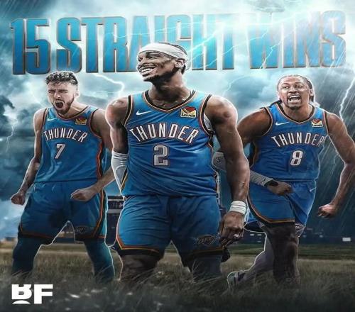 雷霆的强大是全方位的。本赛季至今,他们在24场比赛中的累计净胜分已达到388分,打破了2015-16赛季勇士队创造的开季24场最大净胜分纪录(341分)。他们用一场接一场的统治级表现,宣告着NBA可能已经进入一个由俄城主导的新时代。球队的连胜脚步仍在继续,15连胜已经追平队史纪录,而他们接下来的赛程,似乎还看不到能阻止他们的强敌。